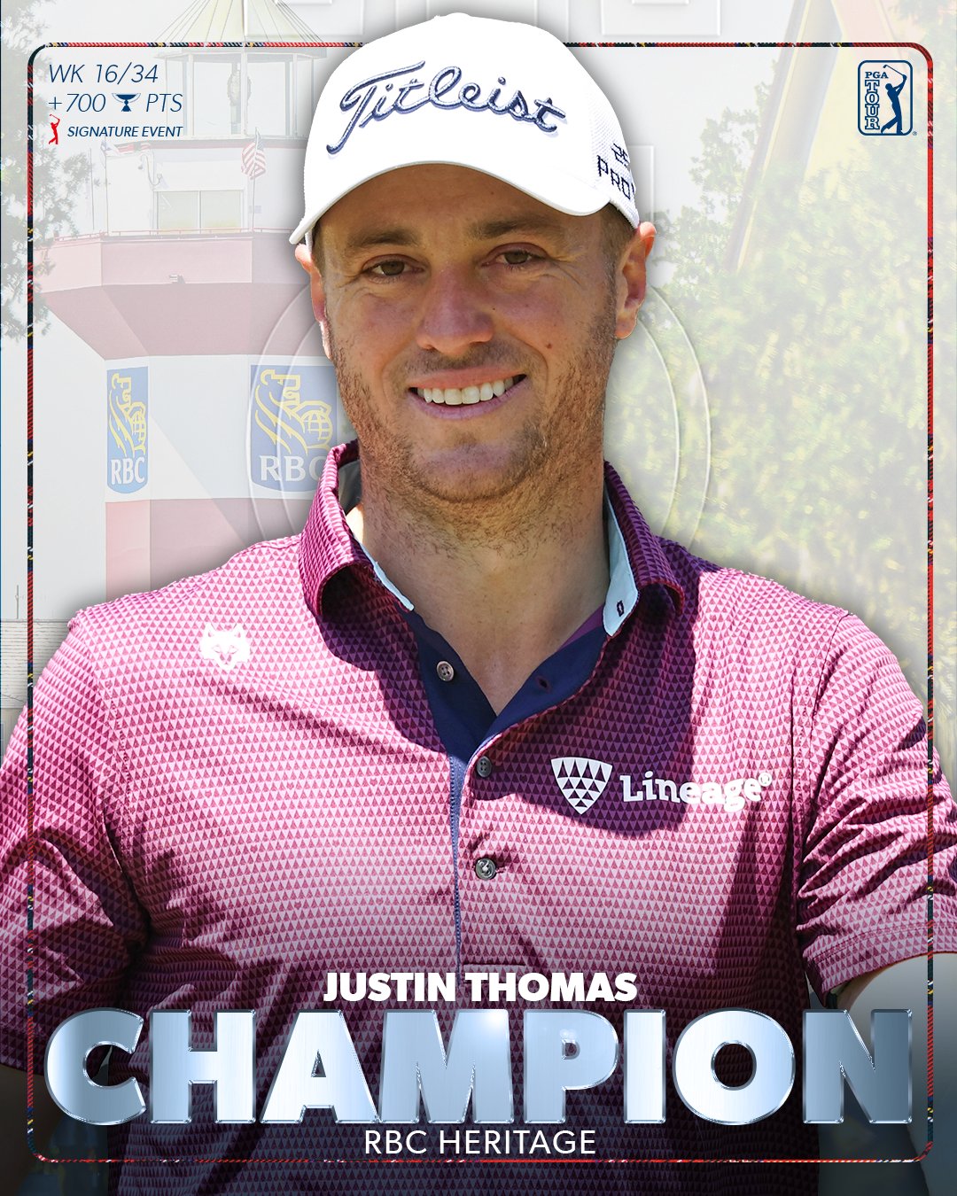 전 세계랭킹 1위 저스틴 토마스가 <RBC 헤리티지>에서 우승했다.